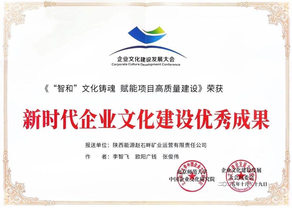 陕西能源赵石畔矿业运营有限责任公司(以下简称“赵石畔矿业”)是陕西投资集团有限公司旗下,A股上市公司陕西能源(001286)的全资子公司。赵石畔矿业凭借“智・和”文化体系的扎实实践与显著成效,在全国近万家申报企业中脱颖而出,成功斩获此项全国性殊荣,成为煤炭行业文化建设的亮眼标杆。