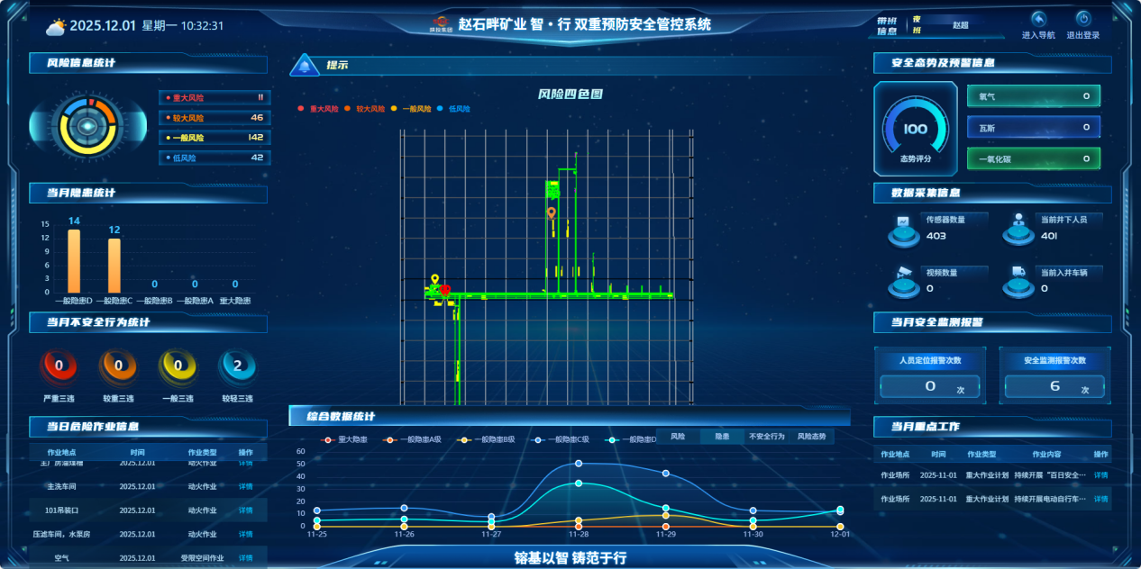 11月27日,随着最后一批功能模块的顺利上线与稳定运行,赵石畔矿业“智·行”双重预防安全管控系统十大核心模块的全模块化全面投用。