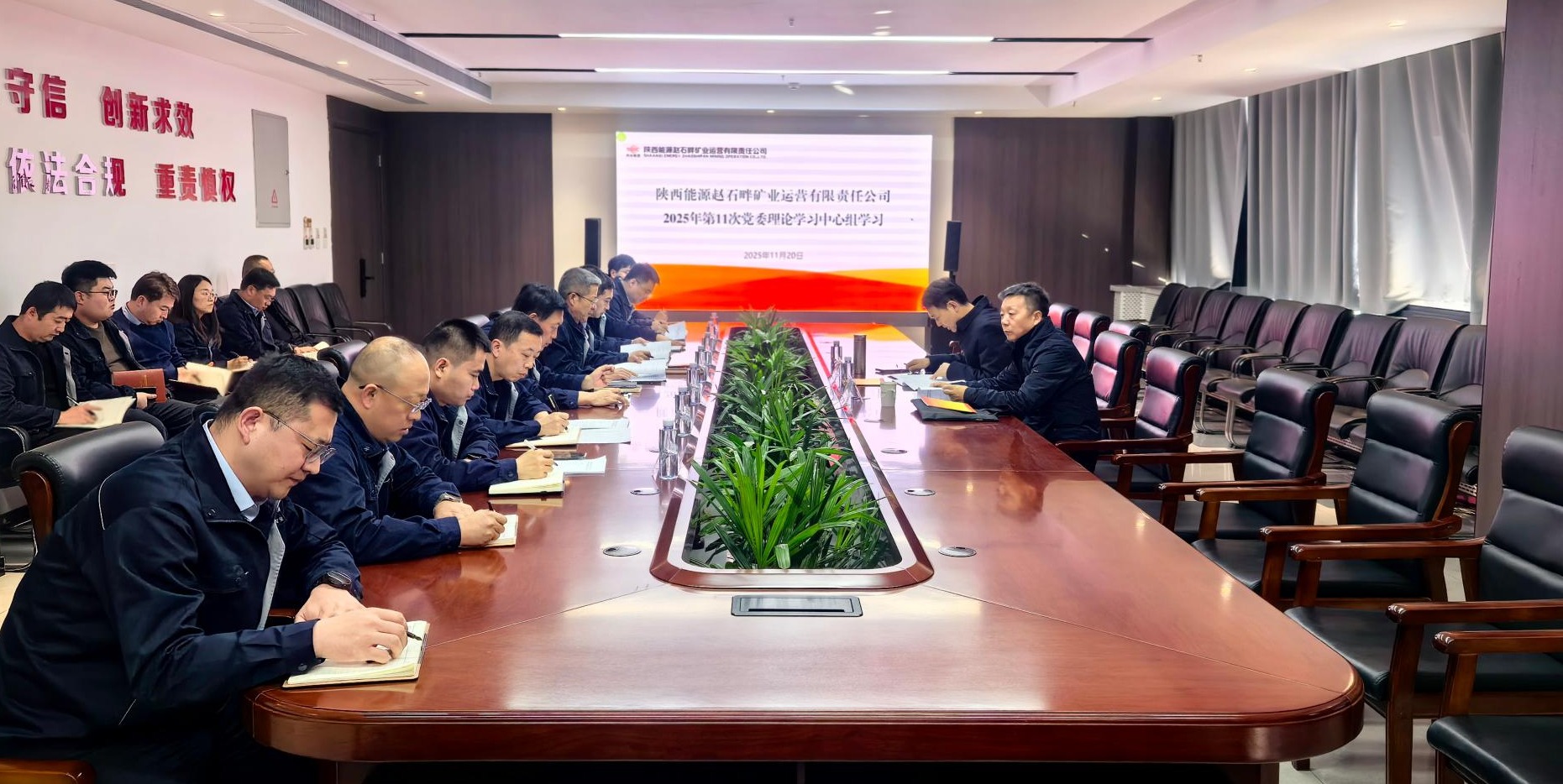 11月20日,陕西能源党委副书记张正峰,陕西能源煤业分公司总经理何宏洲一行到公司开展党委理论学习中心组学习督学督查工作,公司党委书记、执行董事李智飞,党委副书记、总经理欧阳广钱等领导班子成员、各党支部书记、各部门(区队)负责人参加会议。