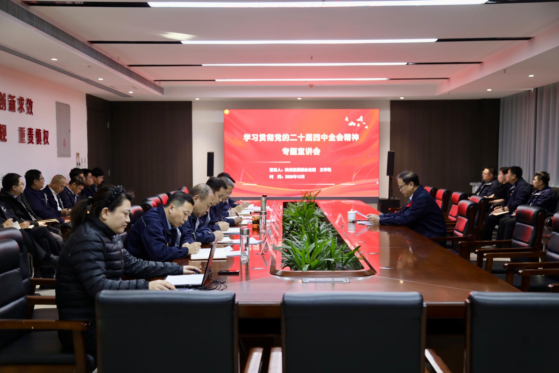 12月30日,陕西能源副总经理王学民到赵石畔矿业公司开展学习贯彻党的二十届四中全会精神专题宣讲,会议由公司党委书记、执行董事李智飞主持,其他领导班子成员,各党支部书记,各部门、区队负责人参加。