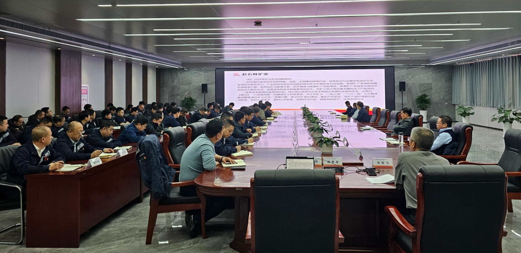 2月21日,公司组织开展“开工第一课”安全生产专题活动,深入贯彻落实国家、省市及国家矿山安全监察局关于春节后复工复产及全国两会期间安全生产工作的决策部署,切实防范化解矿山安全生产风险,为新一年安全生产工作把舵定向、筑牢根基。公司党委书记、执行董事李智飞及其他领导班子成员,各部门、区队代表、全体安全生产管理人员参加。