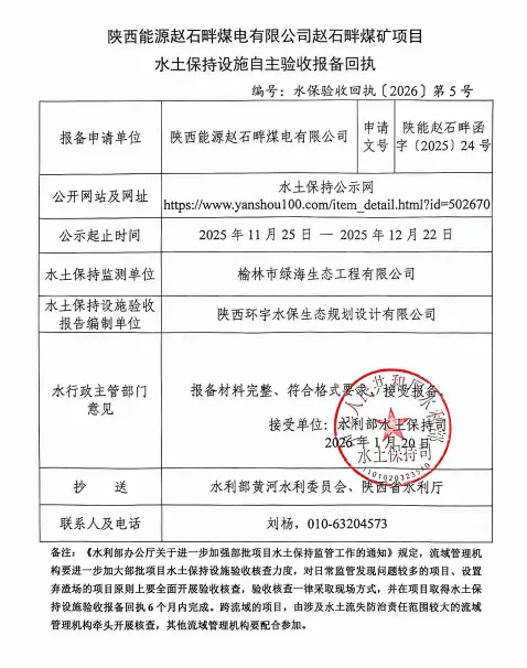 赵石畔煤矿水土保持设施顺利通过验收 筑牢绿色矿山生态屏障