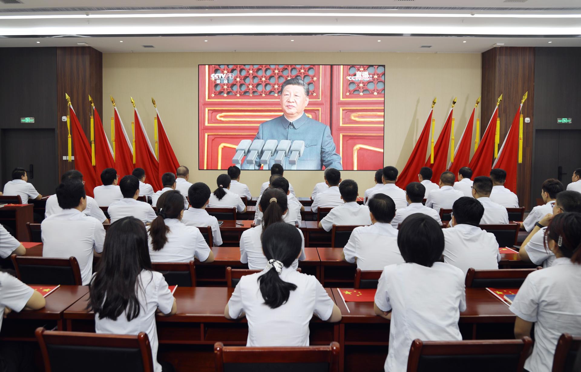 赵石畔矿业公司组织干部职工集中观看纪念中国人民抗日战争暨世界反法西斯战争胜利80周年大会盛况